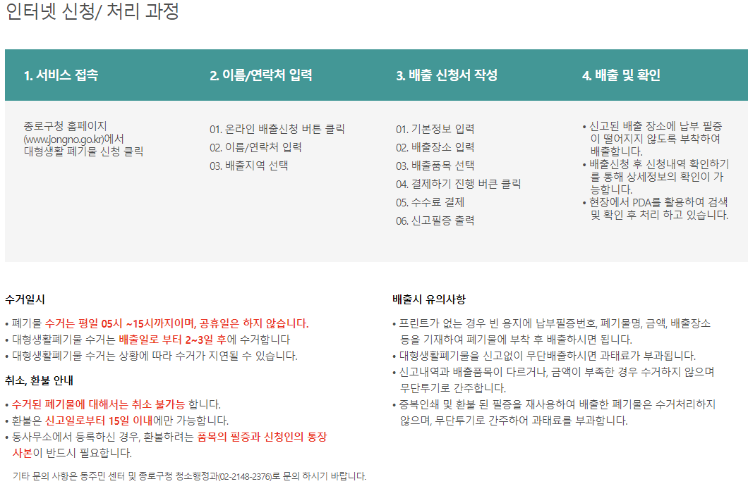 서울 종로의 경우 수거절차가 아래와 같다. :