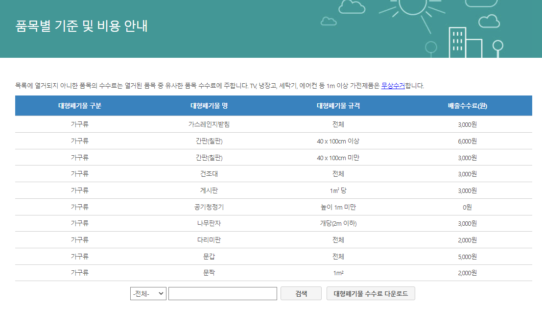 본인이 거주하는 동 주민센터에는 반드시 "대형폐기물"관련 안내메뉴가 있다.