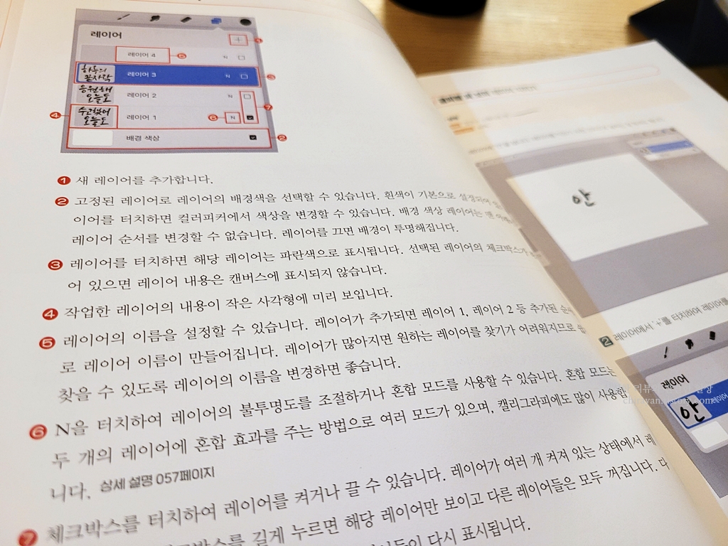마침 아이패드 에어에 프로크리에이트 어플은 있었는데, 주로 그림만 끄적였고 이 책을 볼때까지 상세한 사용방법은 몰랐다. 이 좋은 프로크리에이트를 그림판 수준으로 쓰고 있었다니, 진작에 읽었어야 했다;;