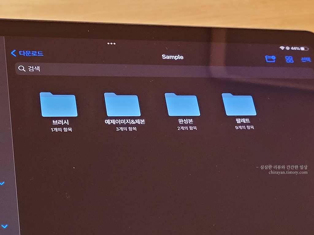 브러시, 예제와 체본, 완성본, 팔레트가 넉넉하다. 이걸 모으겠다고 돌아다니지 않아도 된다.