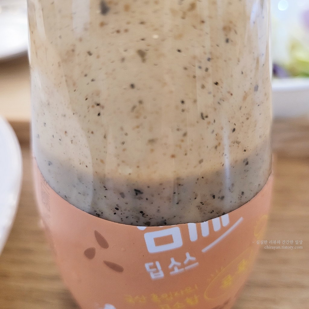 딥소스인만큼 드레싱과 비교했을 때 좀 더 점성있고 원물이 뻑뻑히 많은 느낌.
