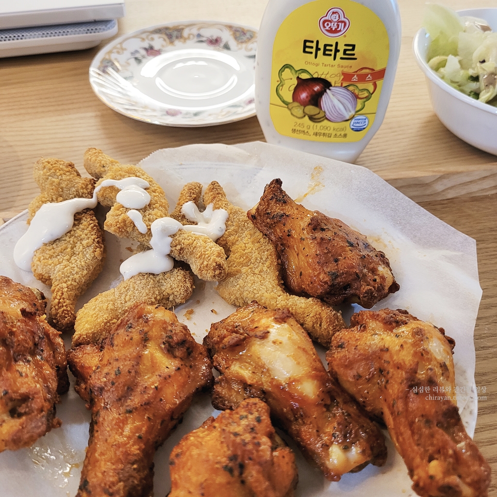 분명 '치킨윙'을 검색해 담았는데 치킨봉이 배송 와서 물음표 띄워가며 어쨌거나 맛있게 먹는 중.