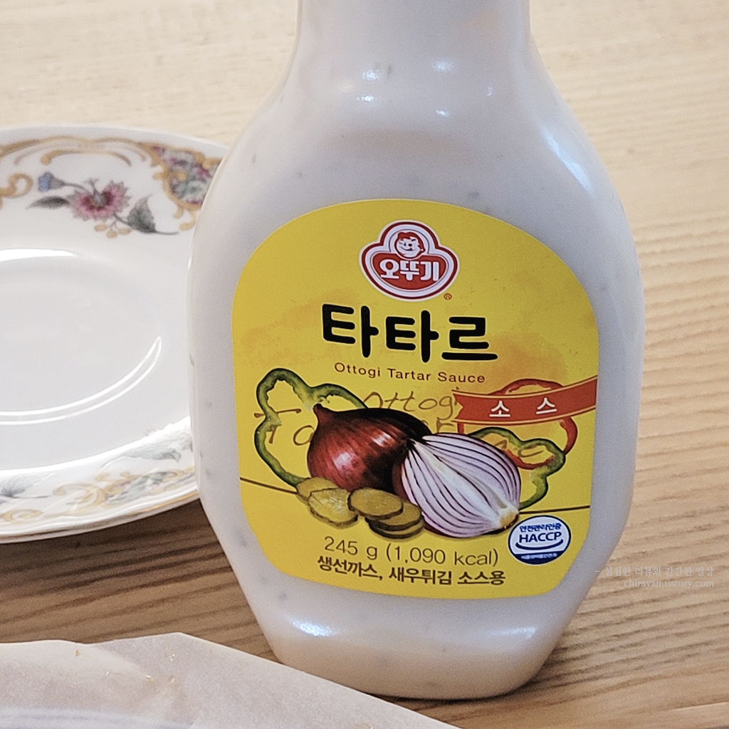 이건 처음에 내가 생각(기대)했던 타르타르소스보다 양파/피클 다진 원물이 좀 적게 들어가있고 ... 기대보다 좀더 새콤하며 소스 치고는 묽다는 느낌이었다.
