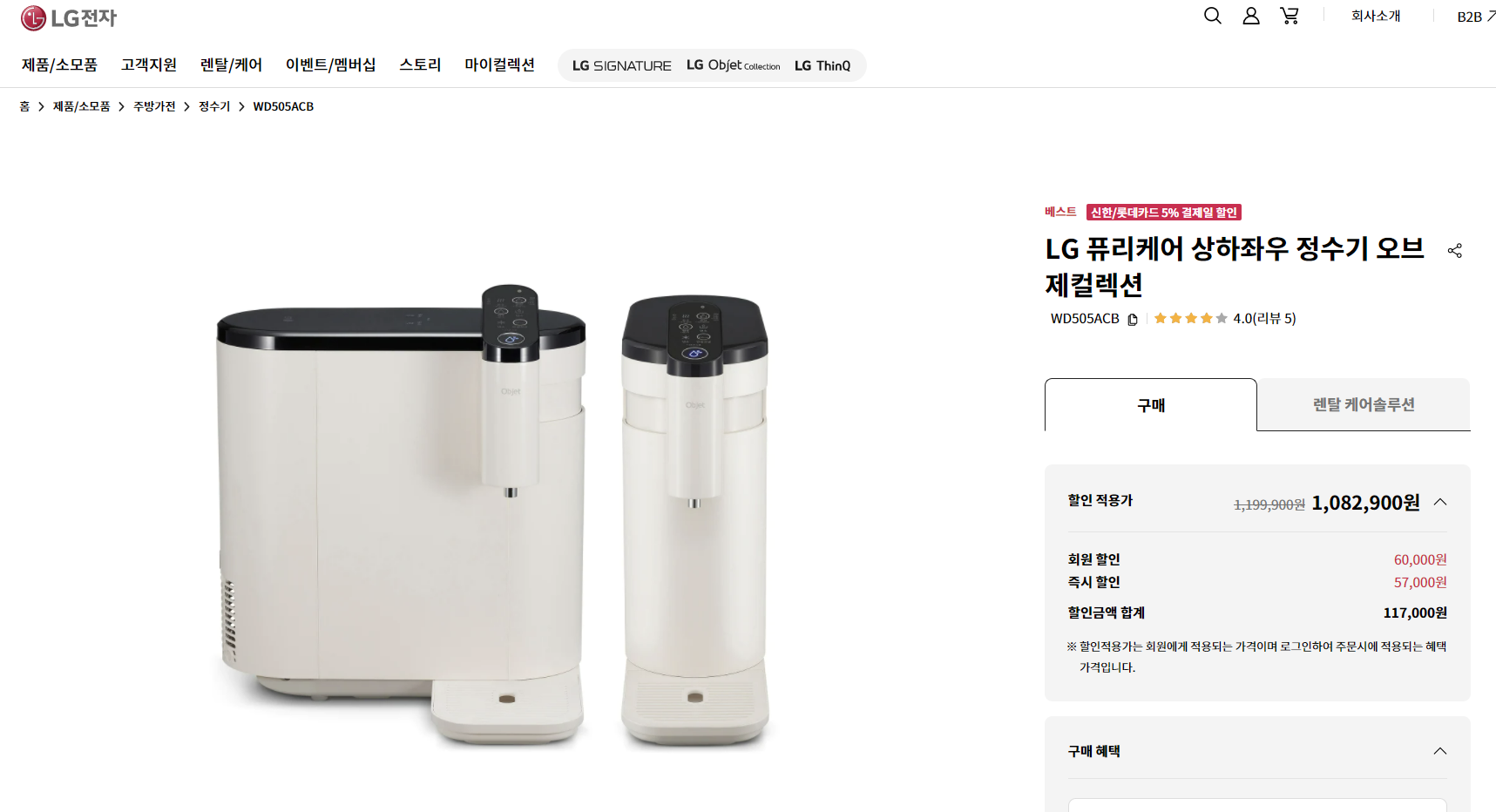 엘지 퓨리케어 상하좌우 오브제컬렉션 카운터탑 정수기,