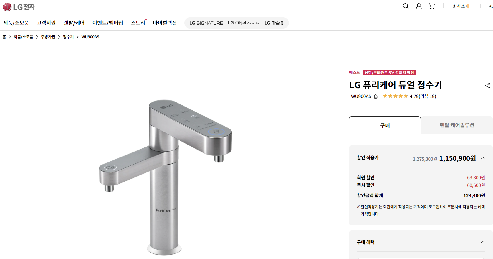 엘지 퓨리케어 듀얼 정수기,