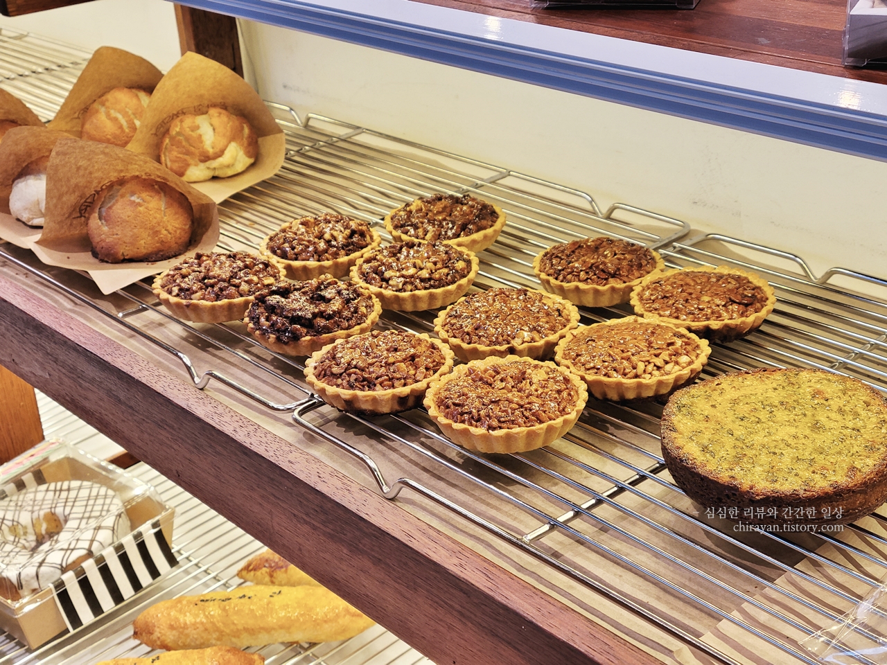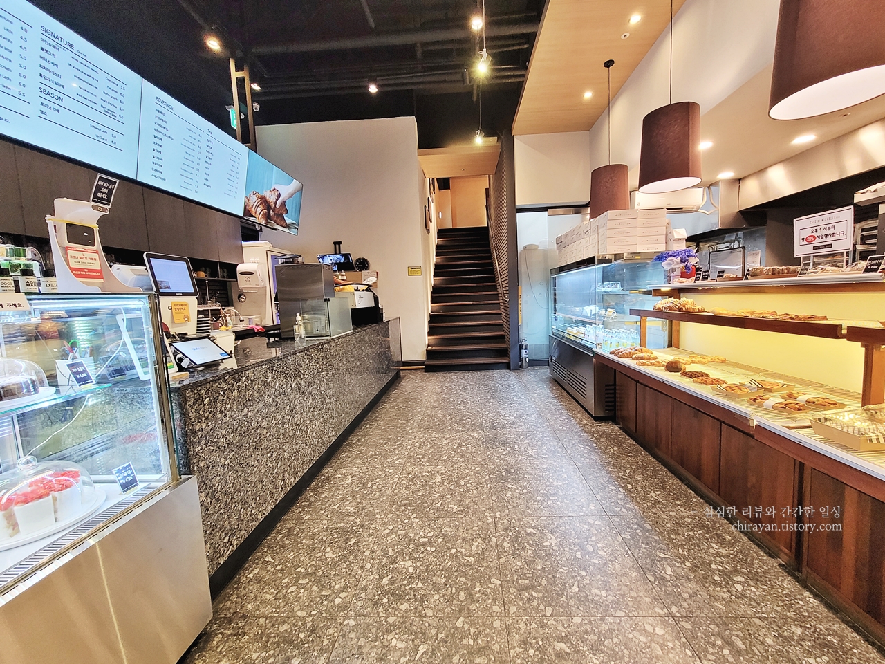 종류가 꽤 된다. 조리실에 언뜻 보이는 오븐들의 종류와 크기를 보면 진짜로 매장에서 직접 굽고 만드는 빵/디저트가 있는 것 같다.