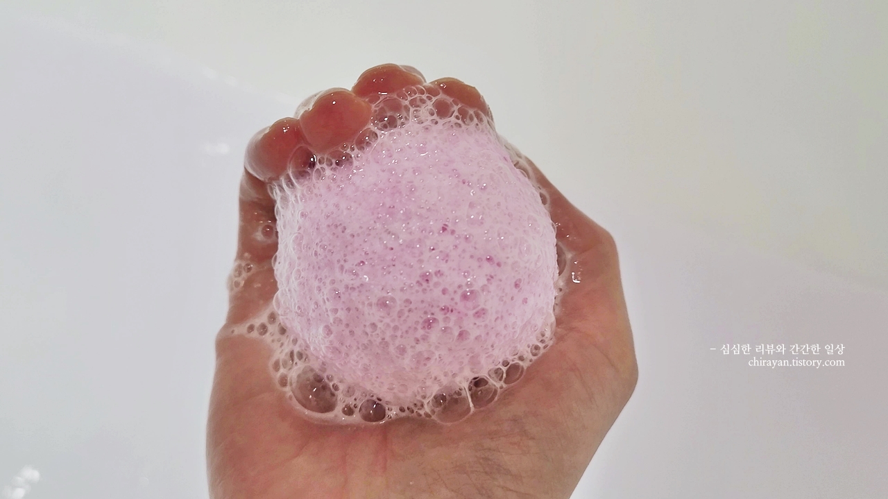 욕조나 수건에도 착색될 걱정 없이 기분내고 싶을 때 유용할것 같다. 이래서 배쓰볼을 사는구나 싶기도 하다.