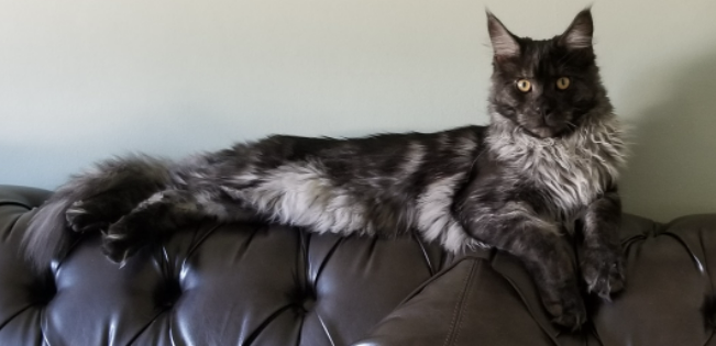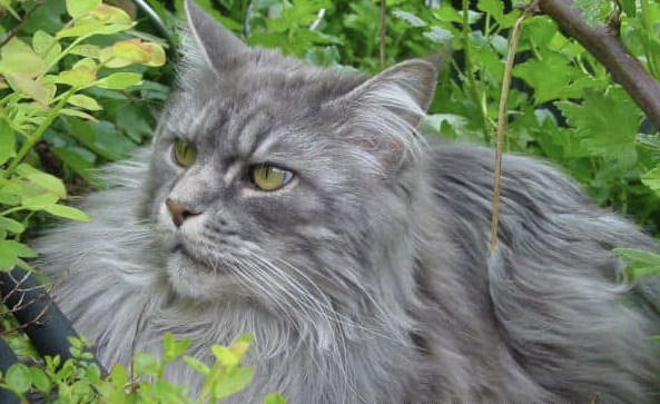 겉털이 착 붙어 매끈하고 속털의 밀도는 낮은 자연발생형 피모의, 주둥이가 긴 대형종 암컷 고양이였어요.