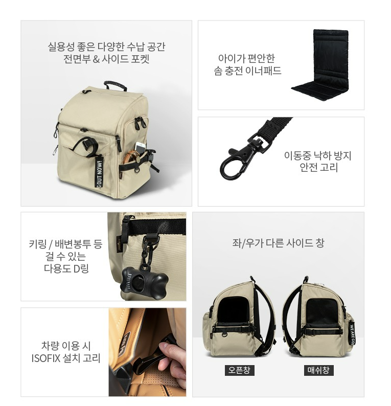 위고노 - 3way 멀티 백팩/카시트 겸용 (샌드베이지 컬러)