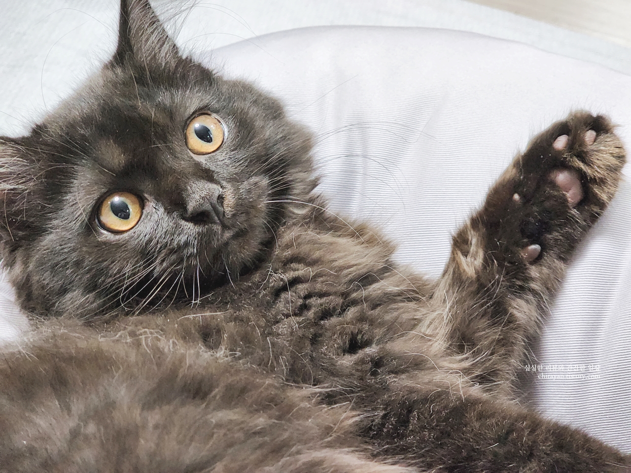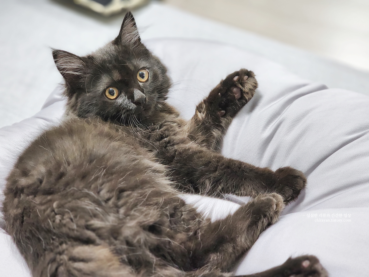 특히나 이쪽 면은 내 털도 덜 붙는 모양이라 집사가 좋아한다냥.