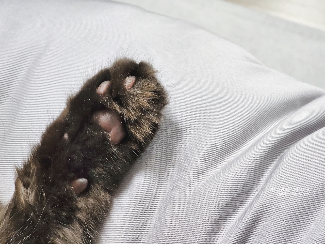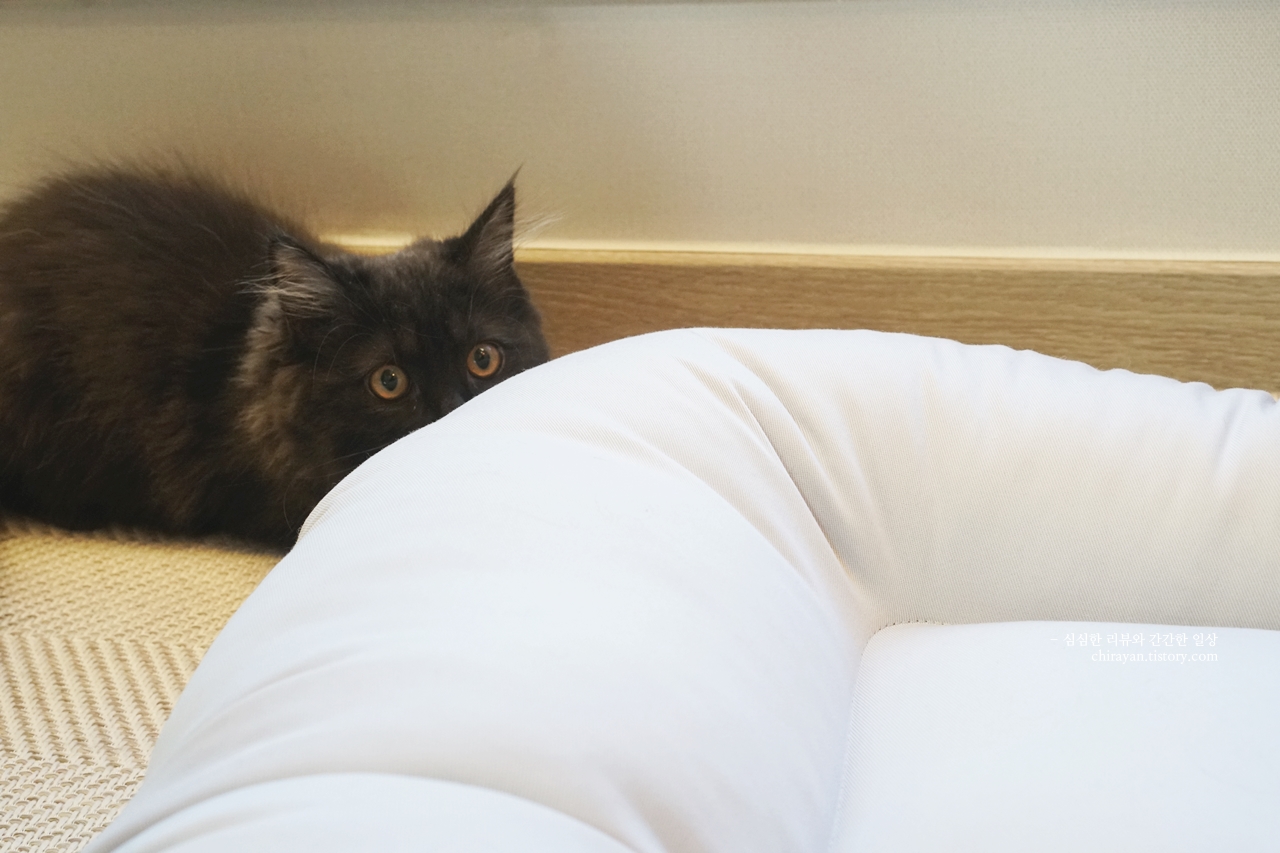 고양이가 장난칠 때 대강 숨기에도 딱 좋게 통통한 볼륨까지.