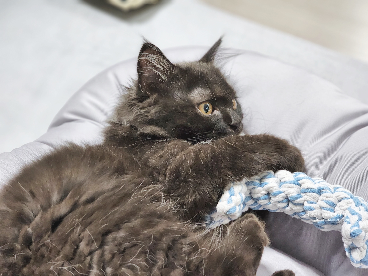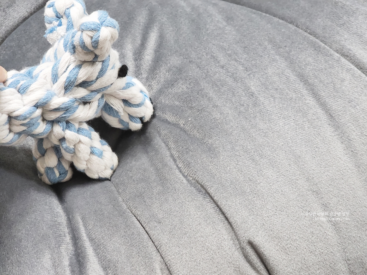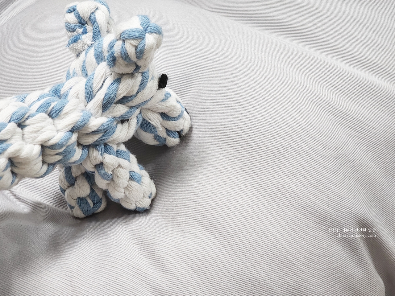 면로프소재인 내 장난감 재질과 비교해보면, 고급 면소재인 게 확연히 차이난다옹.