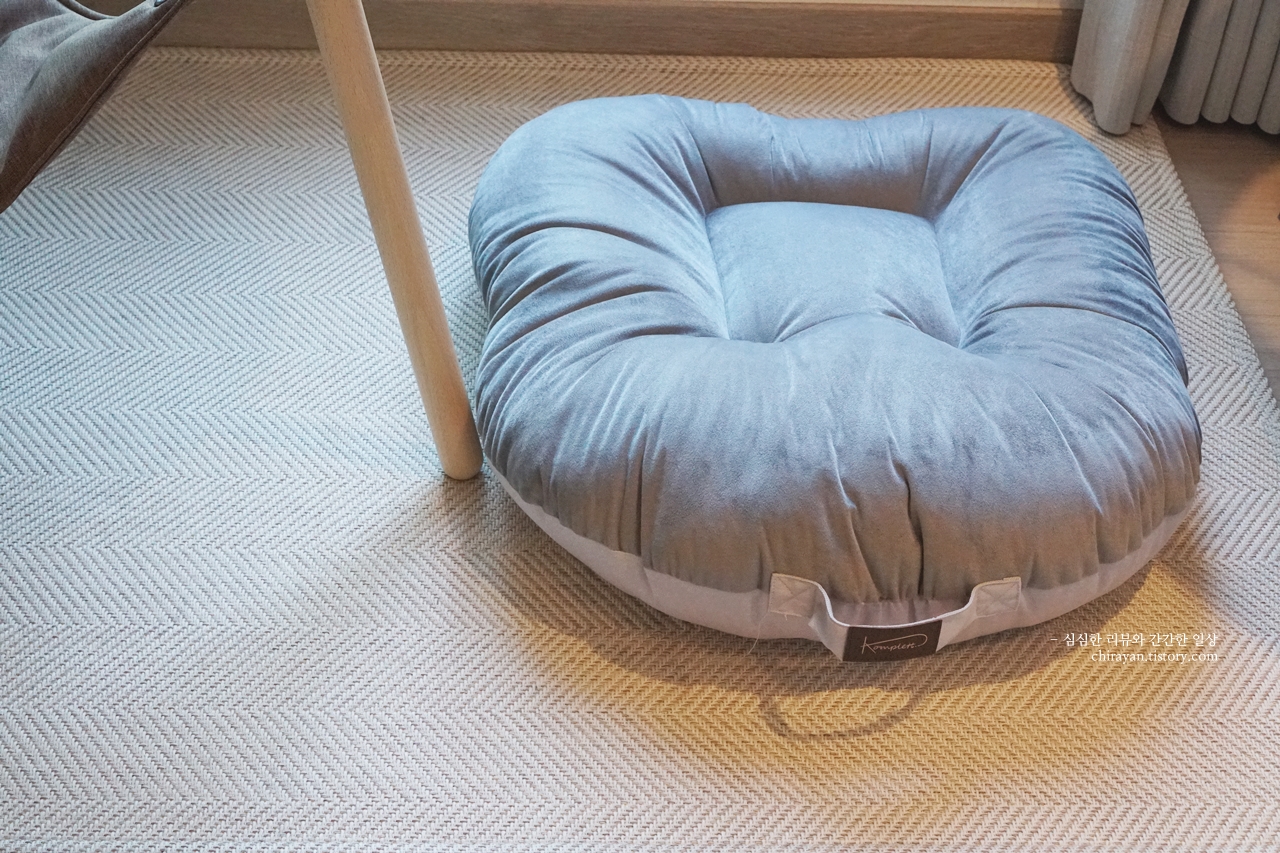양 팔로 안아준 듯, 마치 역류방지쿠션처럼 한쪽이 통통한 방석. (잘 팔리는 아이템엔 이유가 있음)