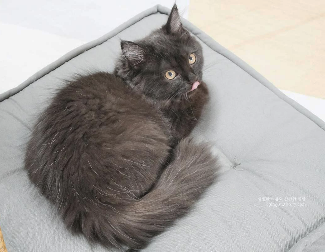 두 발로 밟고 일어서기에도 안정적이고 탄탄히 받쳐준다옹.푹 꺼지는 저렴이 방석이 아니라옹.