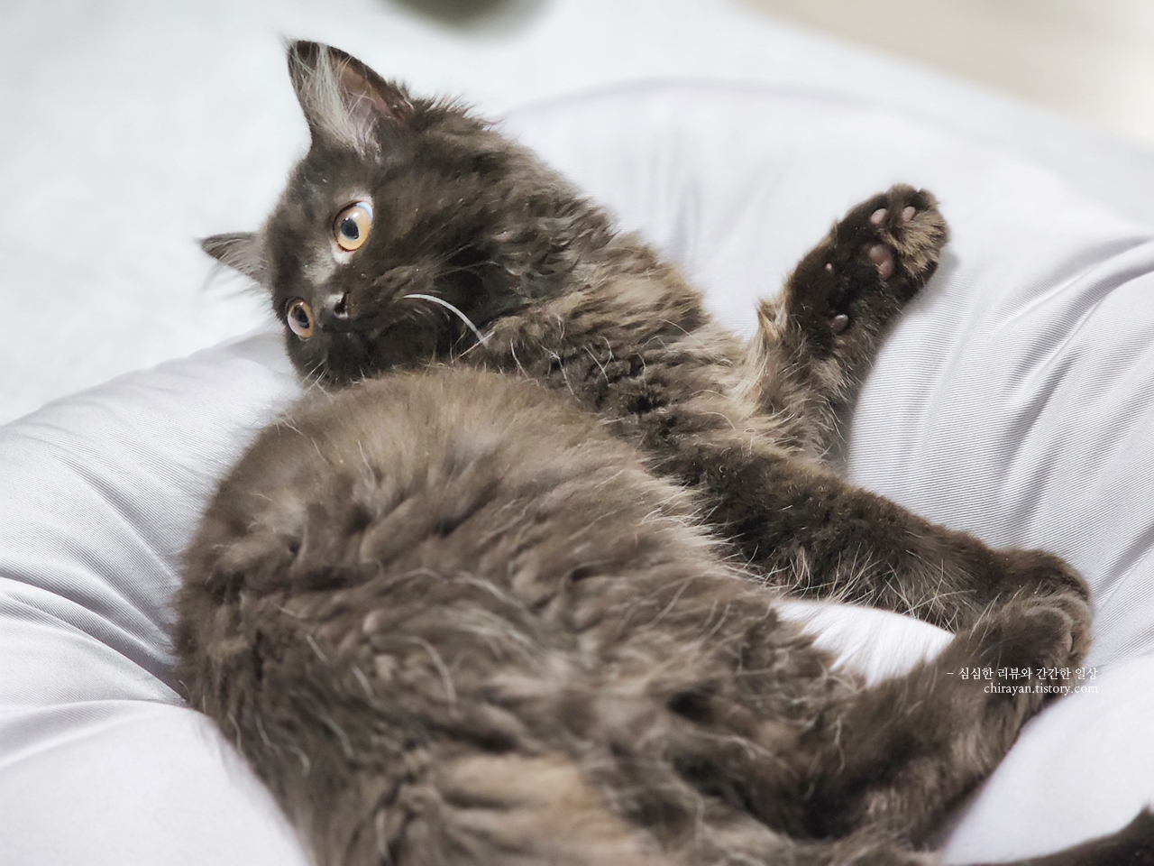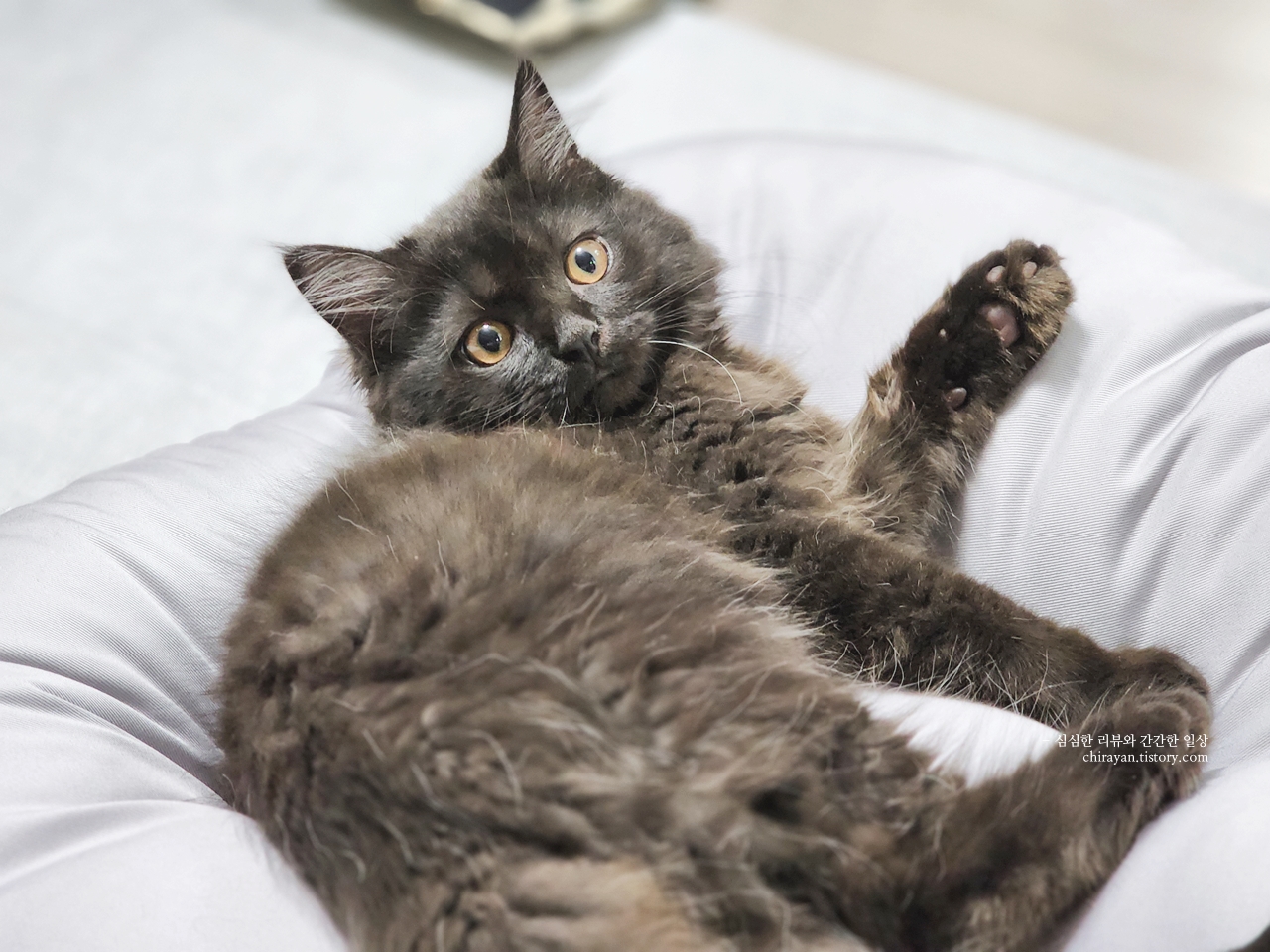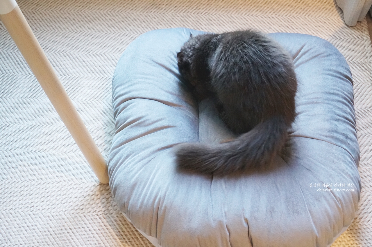 고양이 방석, 또는 고양이 침대라면 갖춰야 할 덕목을 충실히 갖췄으니 고양이 마약 방석으로서 합격이라옹.