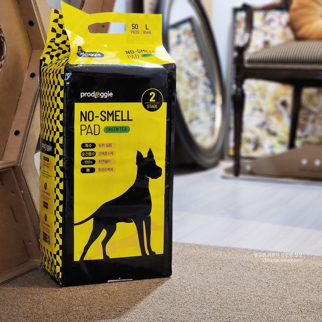 이번엔 3초 흡수패드라고도 불리는 프로도기 노스멜 배변패드를 써봤다. ( L사이즈)