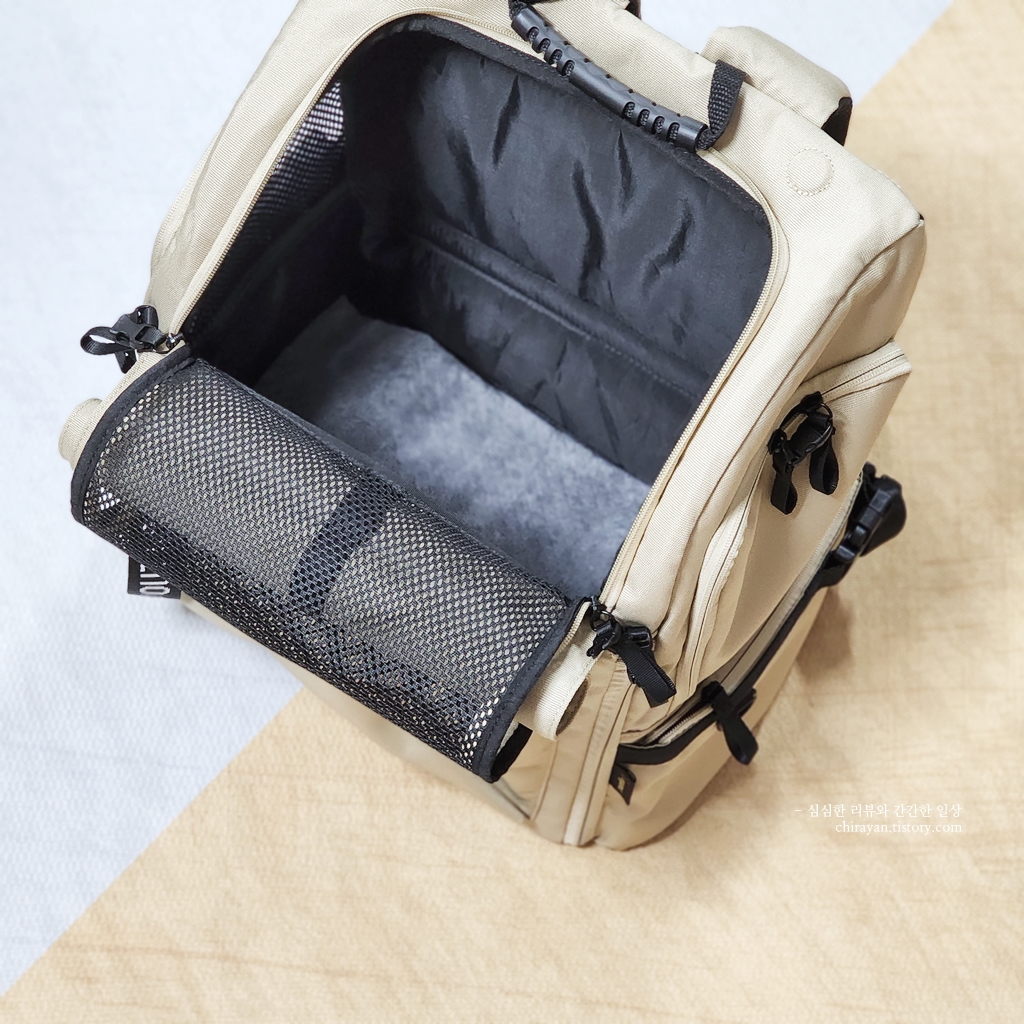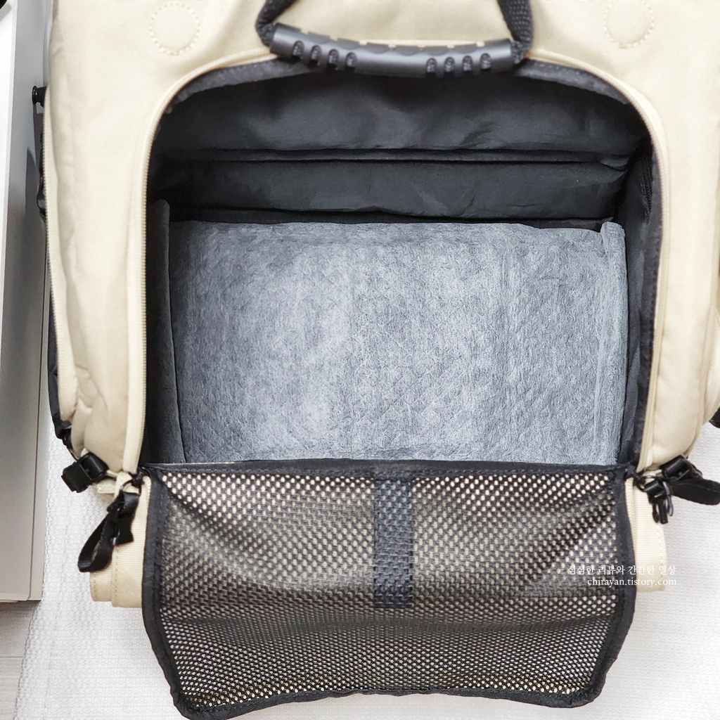 이동가방 바닥에 형태 유지용 하드판넬이 있기 때문에