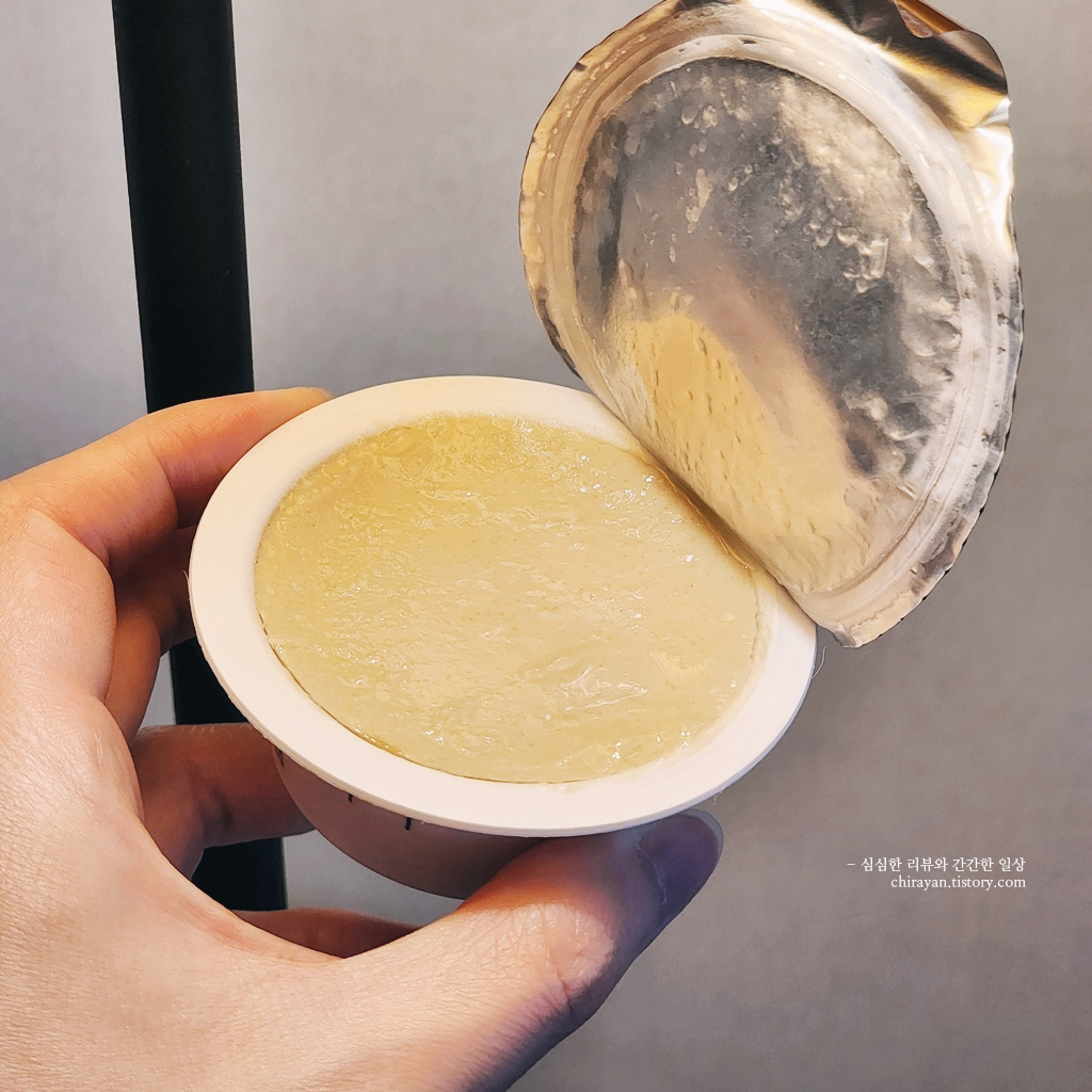 컵에서 똑 떼어내면 수저를 이용해 적당히 가르거나 으깨기 좋다.