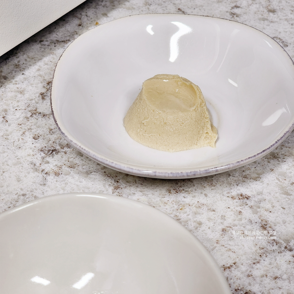 티스푼으로 떠 낸 단면의 질감이 잘 보이게 찍어봤다.