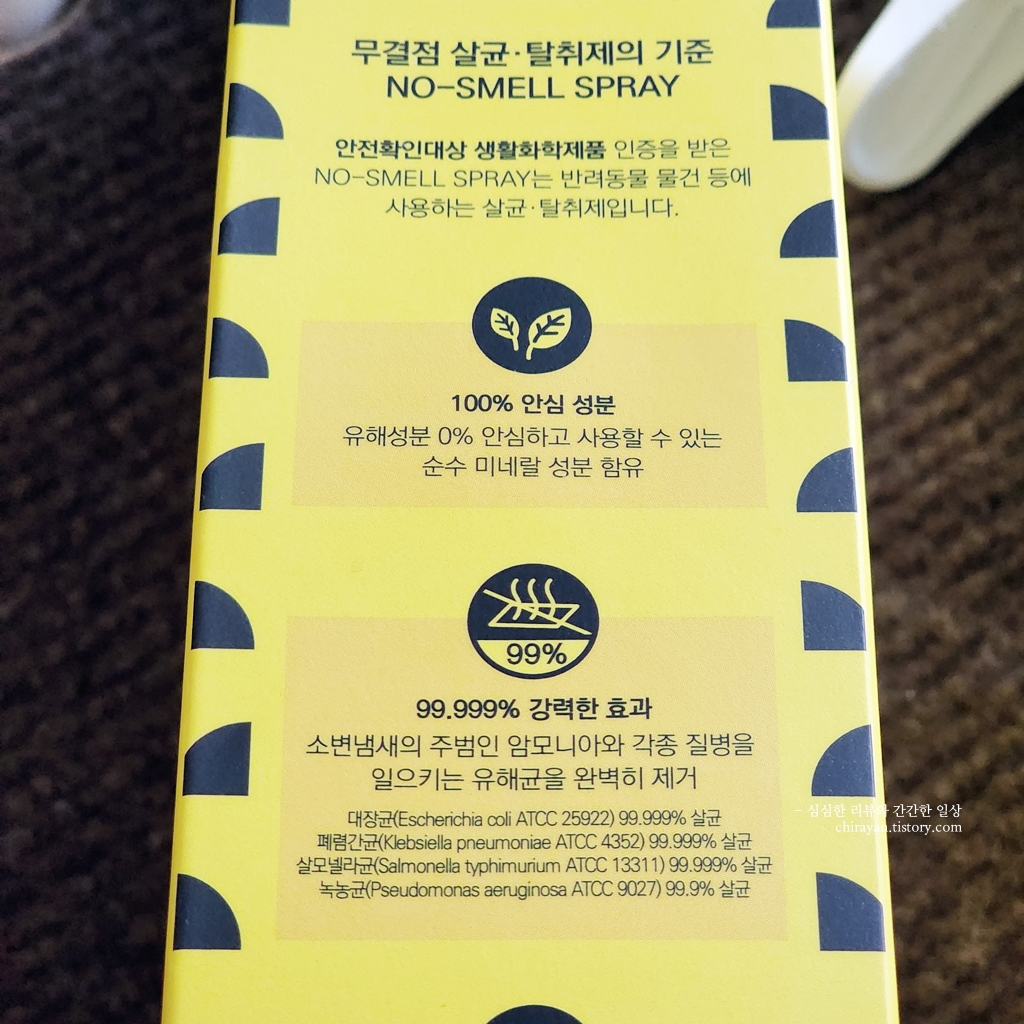살균효과와 악취제거를 동시에 할 수 있어 멍이 반려인들에게도 좋은 제품인것 같다.
