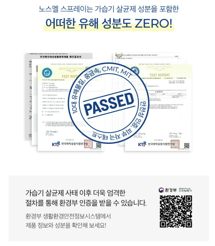 프로도기의 살균탈취제인 노스멜 스프레이는 인공향이나 색소가 없고,