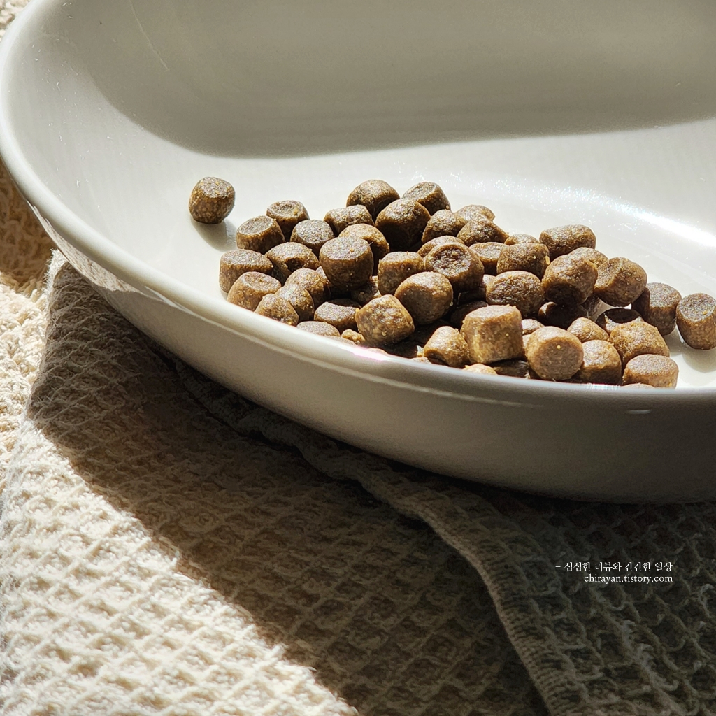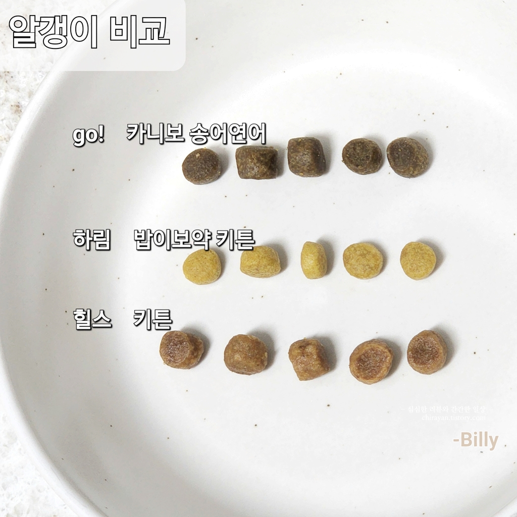 예전 연어베이스 사료나 매커럴 건조사료를 급여했을 때 깨작대던 빌리 덕에 생선베이스 사료는 입맛에 맞지 않으려나 생각했었다. 그렇다기엔 청어가 포함된 다른 주식사료는 잘 먹는걸 보면 꼭 그렇진 않은것 같아 혼란스럽던 때...