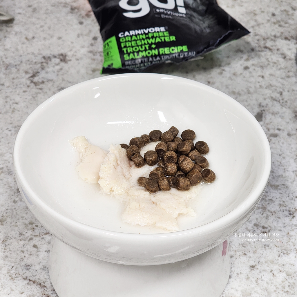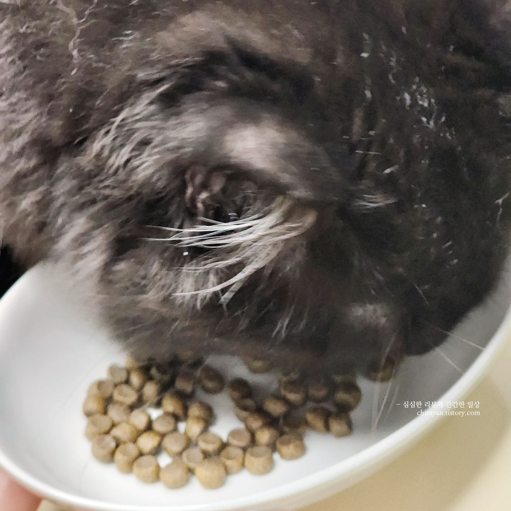 마지막 급여분은 닭가슴살 베이스인 습식 위에 6g을 토핑급여하는 식으로(주말식 형태) 급여형태를 바꿔봤다.