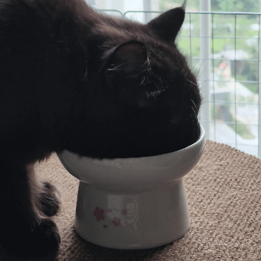 동영상처럼, 원형의 동그란 키블이므로 혀를 앞으로 내밀어가며 씹는다. 이는 납작한 형태의 사료에 비해 어금니에 씹히도록 자리잡는데 어려움이 있기 때문인데, 천천히 먹게 된다는 장점이 있으나 일부 급히 먹는 고양이들에겐 흡입식사를 유발하므로 슬로우피더나 넓은 그릇을 쓰면 좋다.