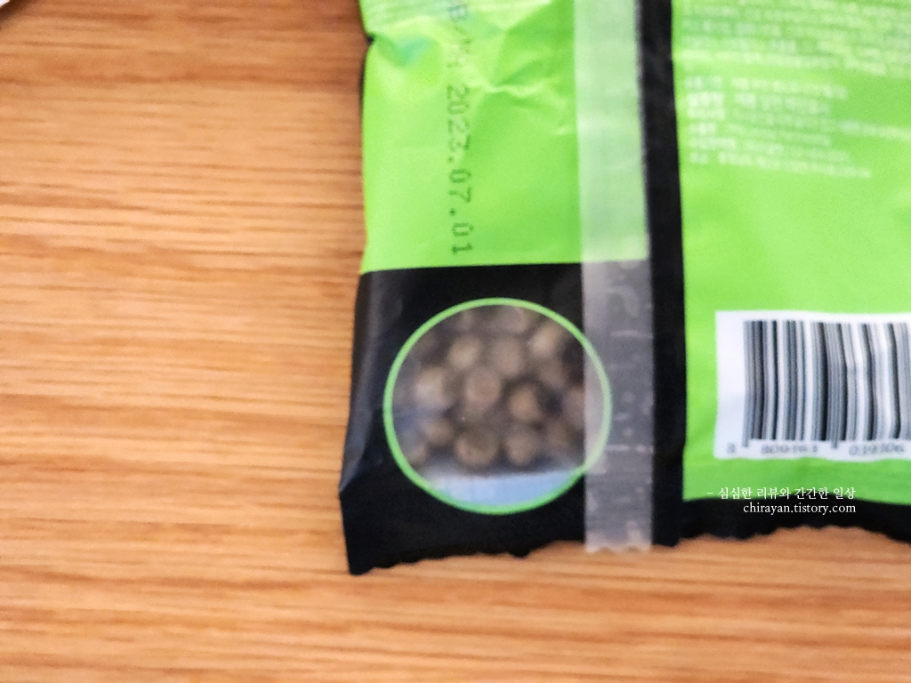 봉투에는 알갱이의 사이즈(5-8mm)와 형태를 미리 체크할 수 있는 반투명 창이 있어 아주 유용했다.
