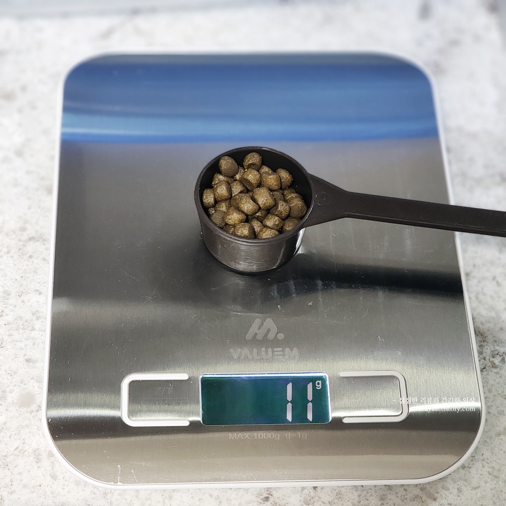 아침에 확인한 소화상태가 .. 끝이 조금 무른 관계로 천천히 늘려보기로 했다. 둘째 날에는 일일 6회의 급여타임 중 2회, 회당 9g씩을 급여했다.
