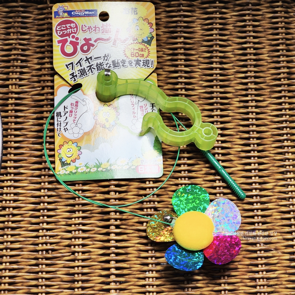 요건 문고리에 걸어서 쓸 수 있는 '캐티맨 롱와이어 문고리 장난감(해바라기)'으로,