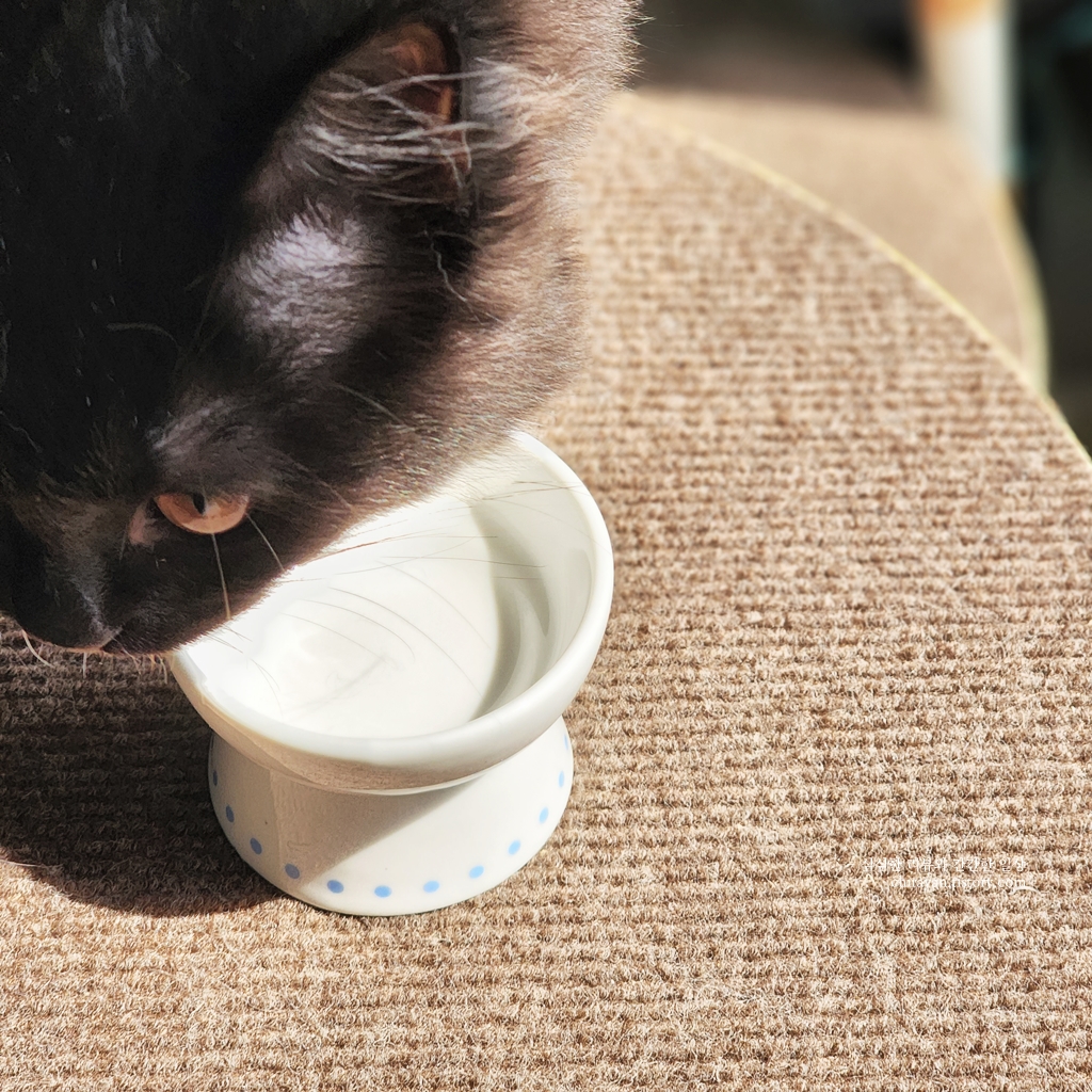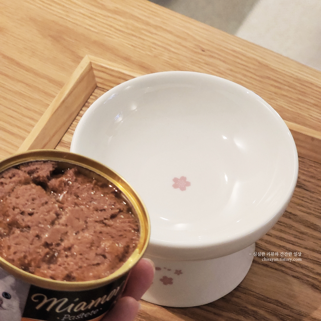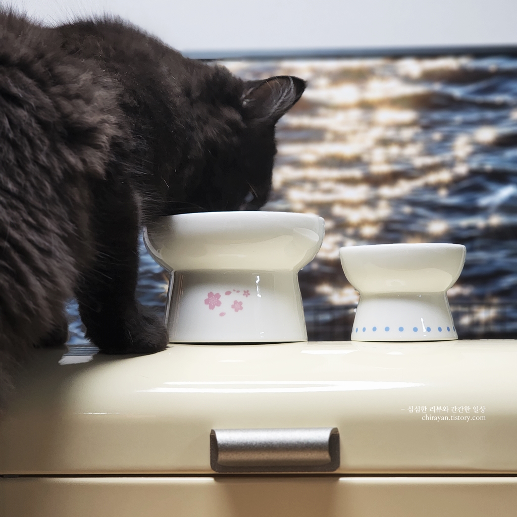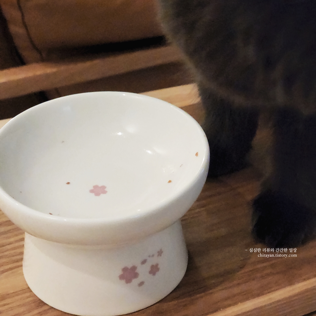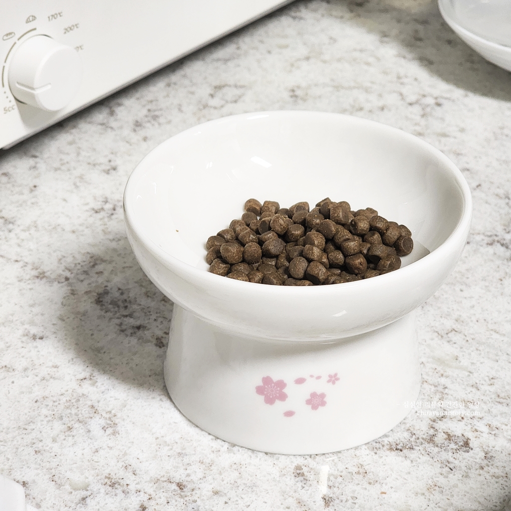 동그란 형태의 사료는 낮은 그릇에 담아 줬을 때 혀에 튕겨 굴러떨어지기 일쑤인데,