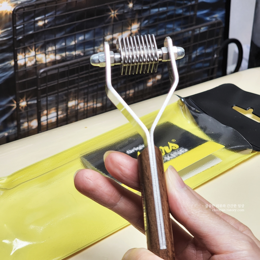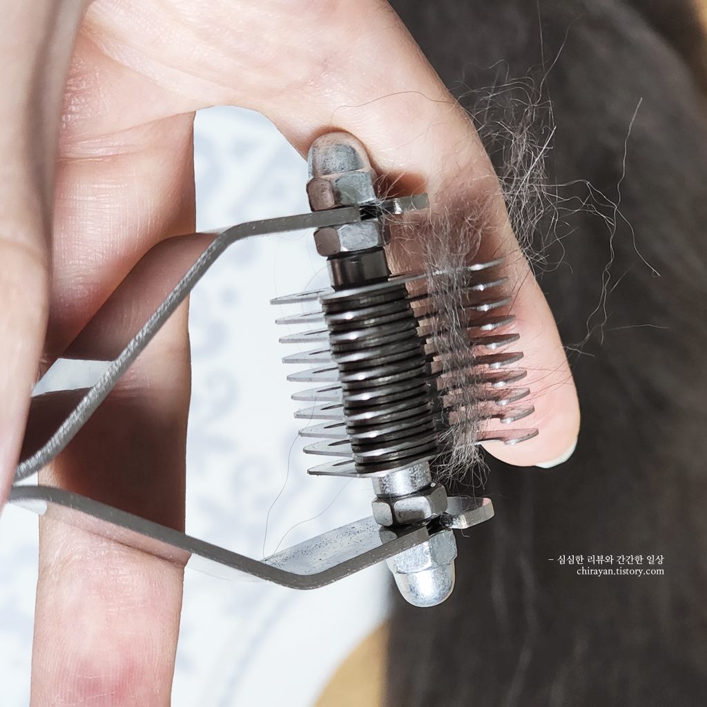 요즘은 이렇게 전용 죽은털제거빗이 쉽게 수입되어 만날 수 있으니 편해졌다.