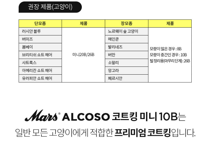 마스알코소 코트킹 미니 10B는 일반 모든 고양이에게 적합하다고 한다.