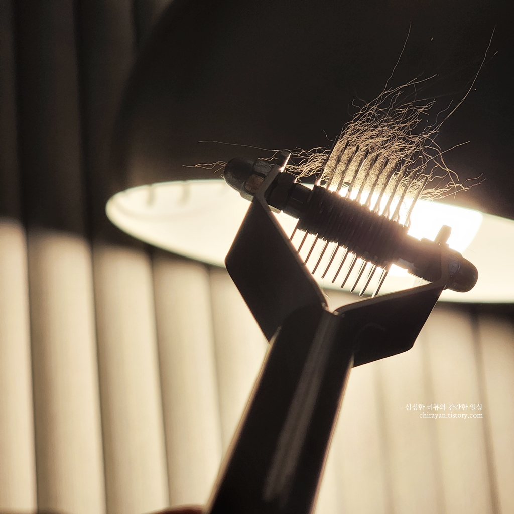 엉겨서 죽은 털은 일반 빗질할때와는 다르게 뭉텅이로 빗에 남는다.
