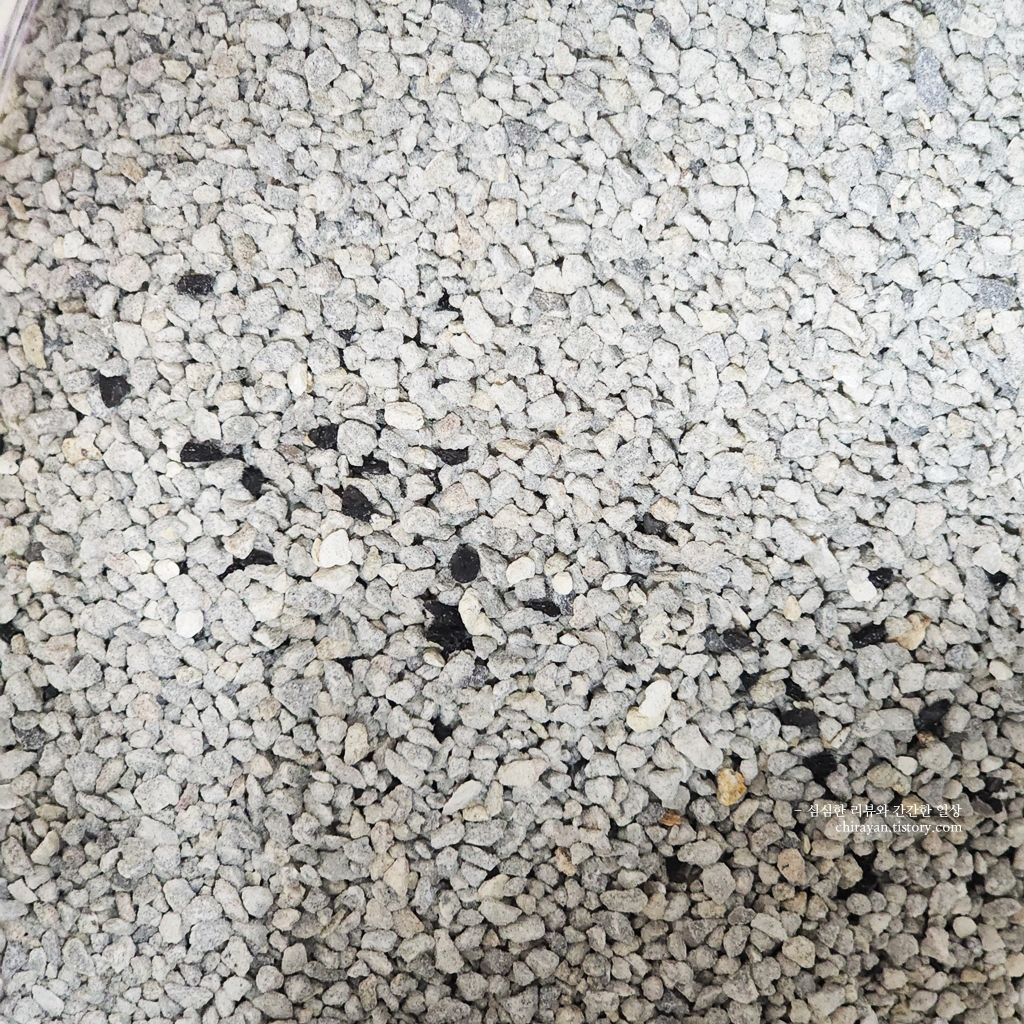 아주 곱게 바스러진 가루와 일반 사이즈의 알갱이가 섞여있는데