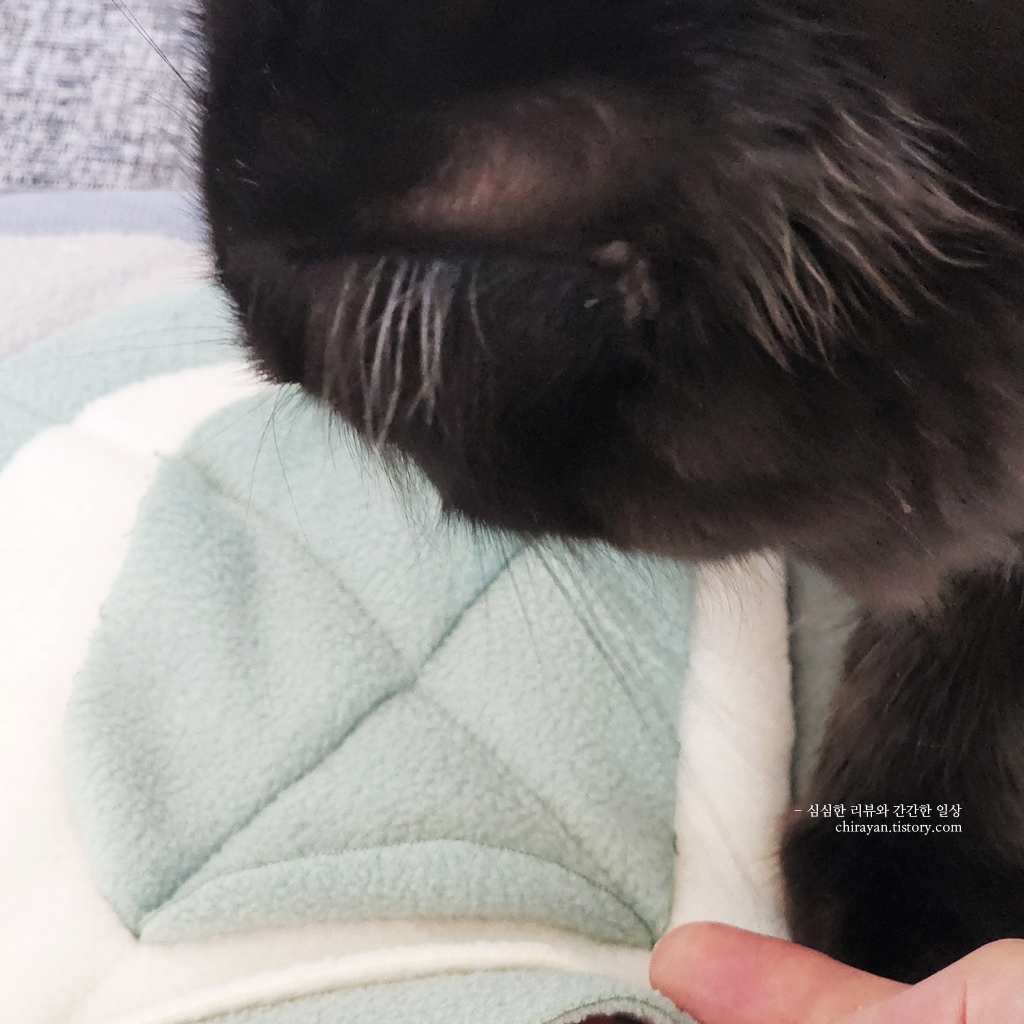 강아지/고양이 겸용으로 나온 제품이라 제품의 냄새는 내가 코를 박고 맡아도 꺼려지지 않았는데 말이다.