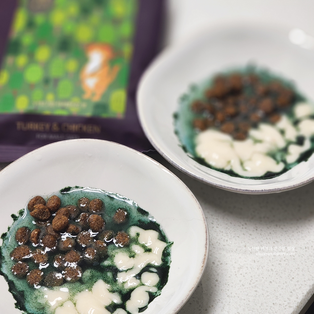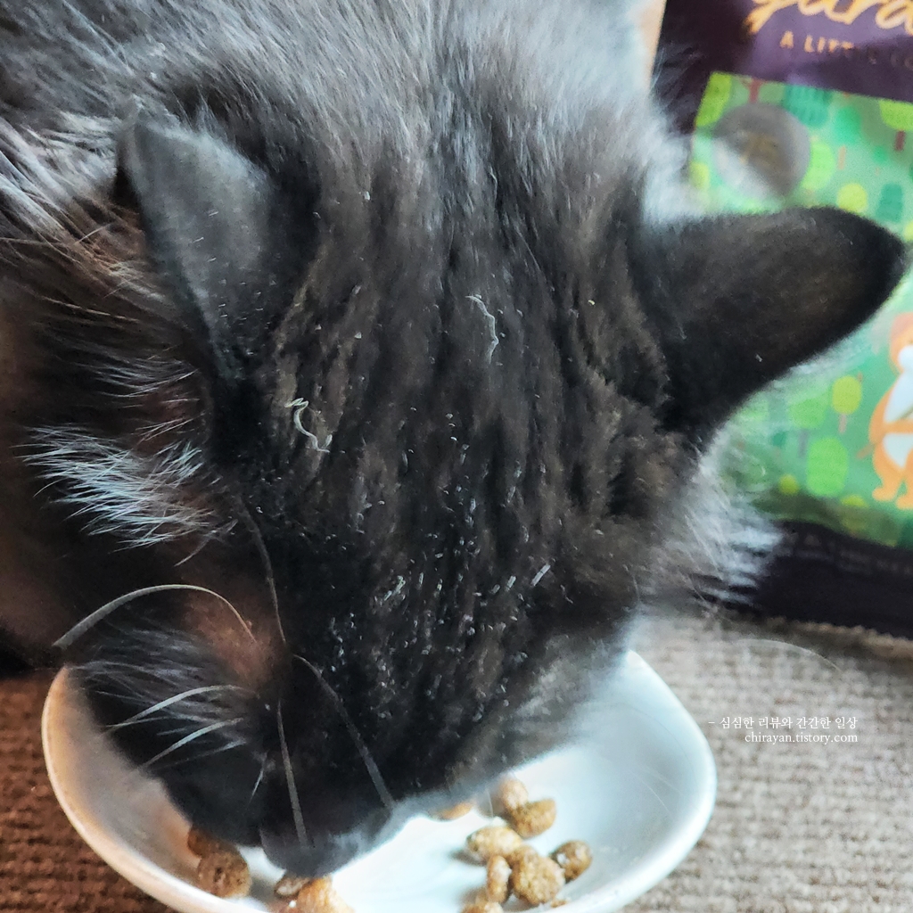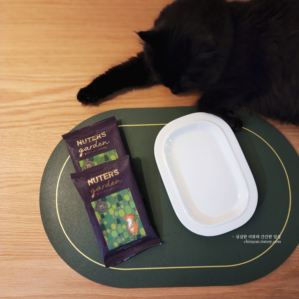 적은 양이지만 자연스레 천천히 먹고 만족스러운 그루밍을 하게 유도할 수 있다.