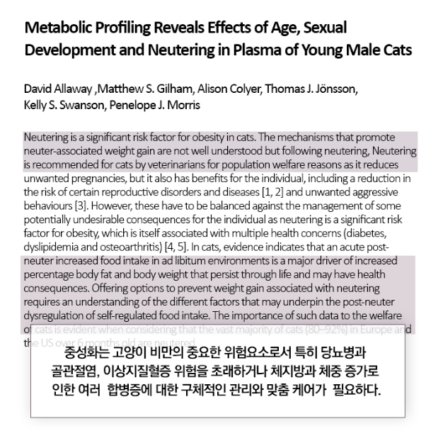 중성화 이후 더욱 중요해지는 "풍부하고 품질 좋은 동물성원료" 로 만든 사료이며