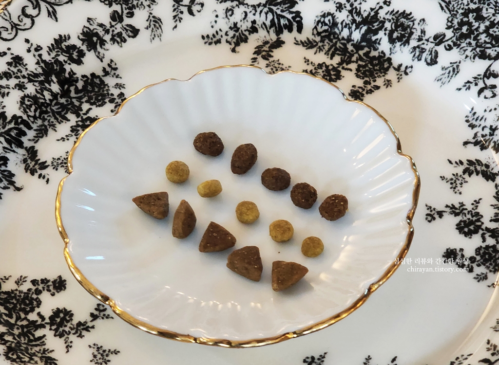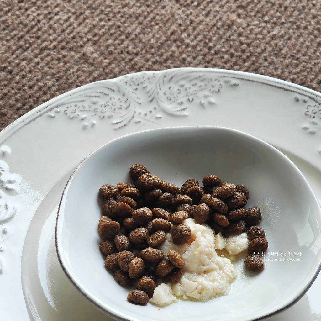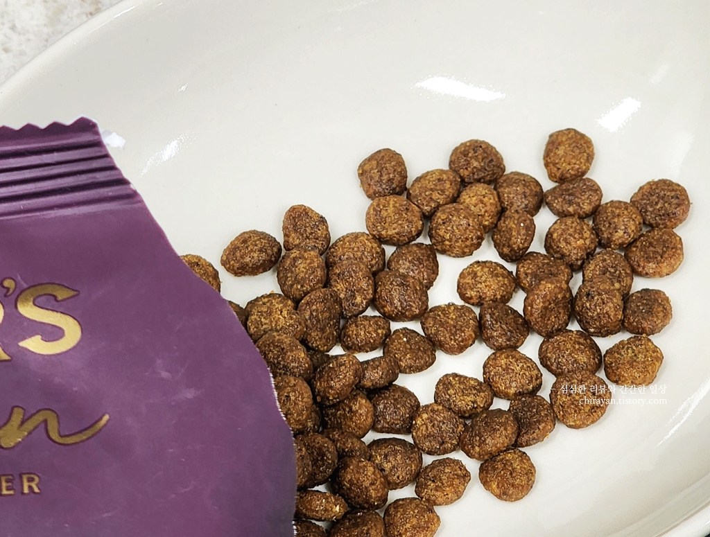 씹어먹지 않아도 돼서 그릇 주변에 부스러진 사료가루들이 흩어질 일이 없겠다.