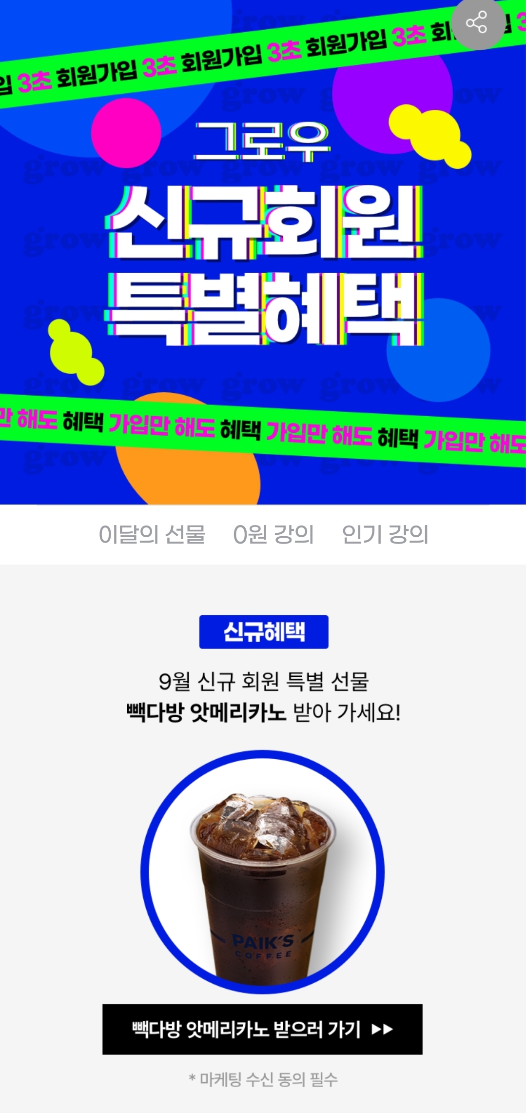 지금 grow에서는 신규회원 대상 행사중이니 참고.