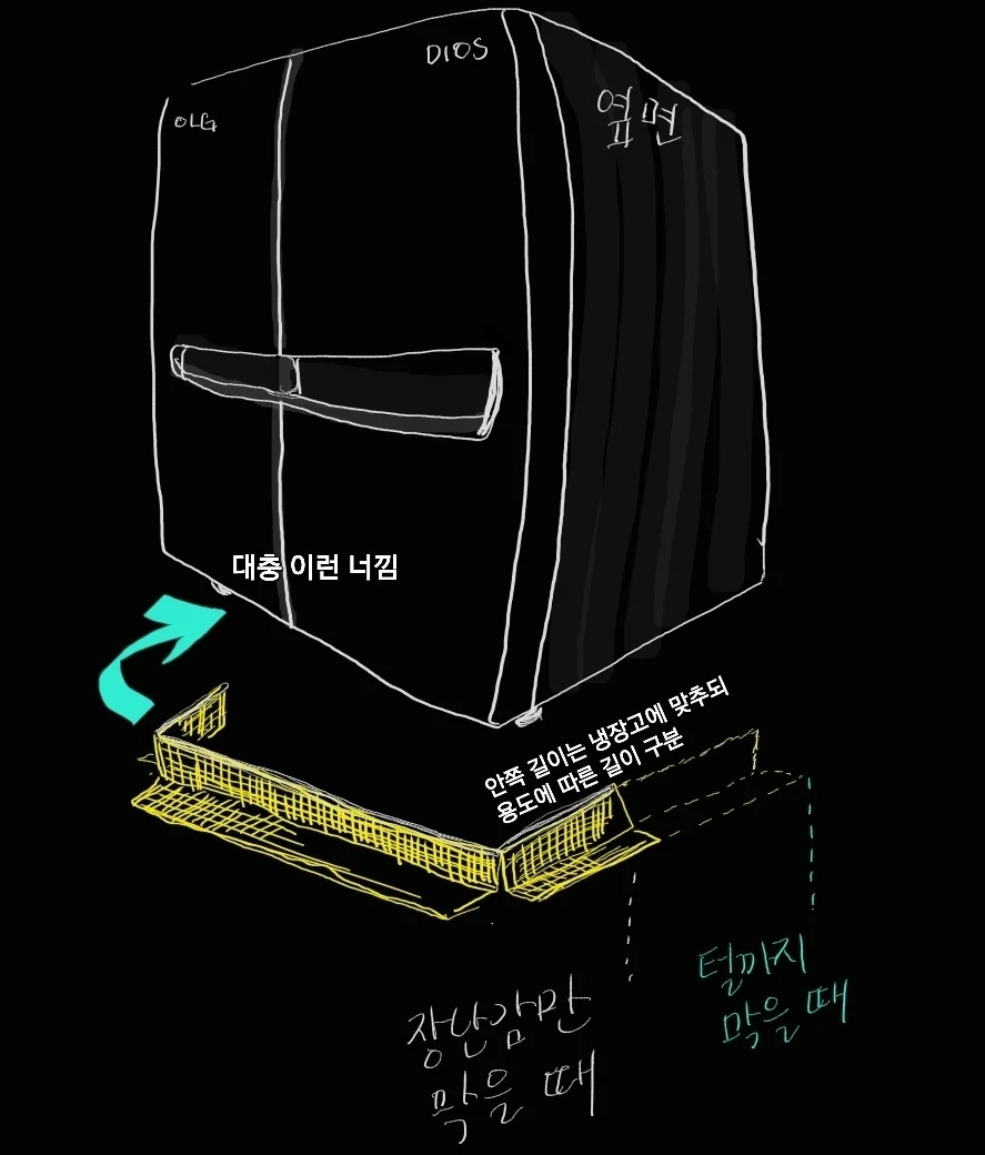 냉장고 하판보다는 작게 만들어야 하니까요.