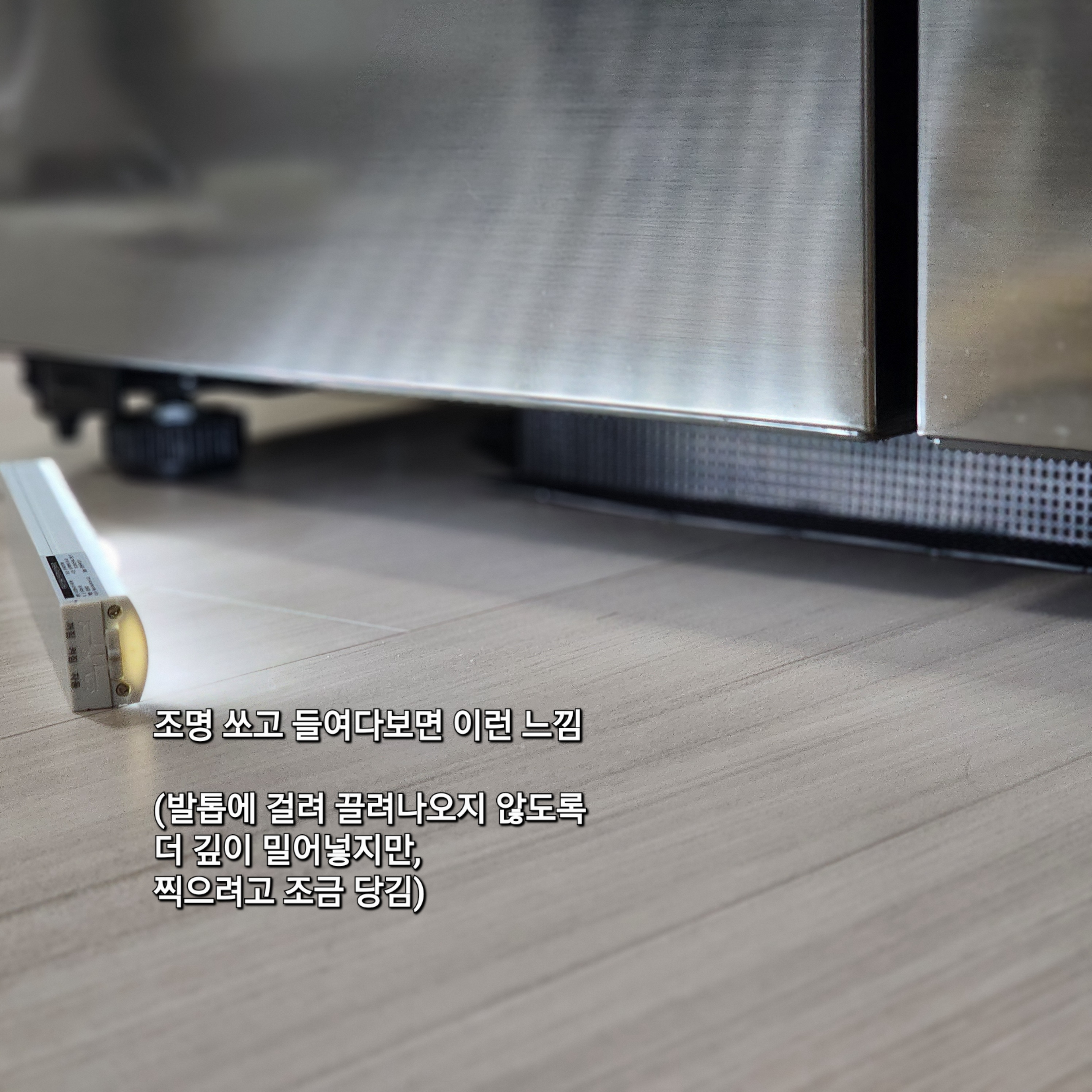 - 냉장고 아래 밀어넣으실 때 : 양쪽 끝을 동시에 넣지 말고