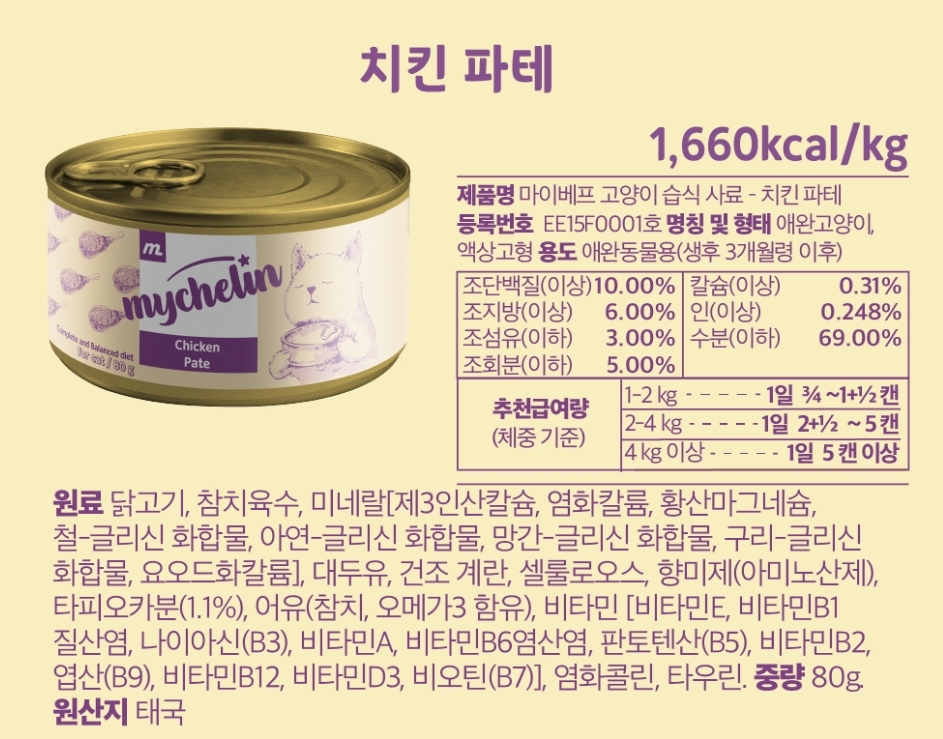 마이슐랭 주식캔은 파테에 환장하는 고양이들에게는 그야말로 천상의 식감일 듯.