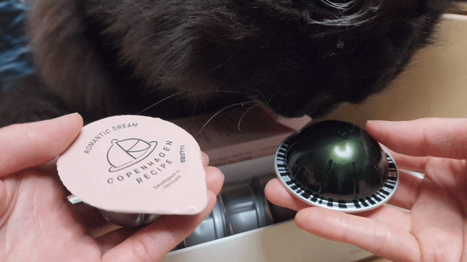 마치 캡슐머신의 커피캡슐 패키지를 연상케 한다. 집에 머물고 있는 브라운톤의 참새씨와 잘 어울린다.