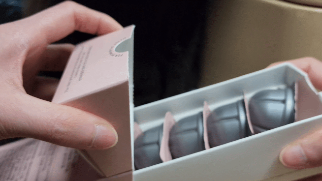 알맹이를 꺼내보면 네스프레소 버츄오 작은 캡슐만한 크기가 맞다. ㅋㅋㅋ