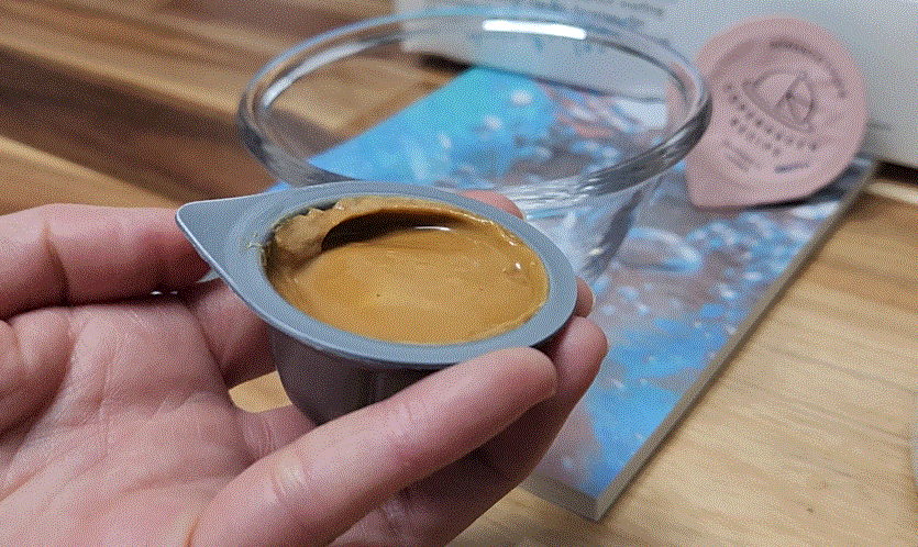 알맹이를 꺼내보면 네스프레소 버츄오 작은 캡슐만한 크기가 맞다. ㅋㅋㅋ