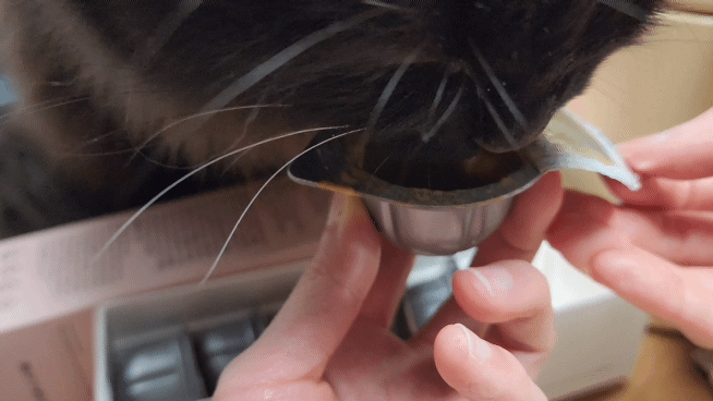 고양이의 경우 특히나 향으로 식욕을 돋구어야 하는 상황이 종종 발생하니 향을 맡는 순간 좋아하겠구나 싶었다.