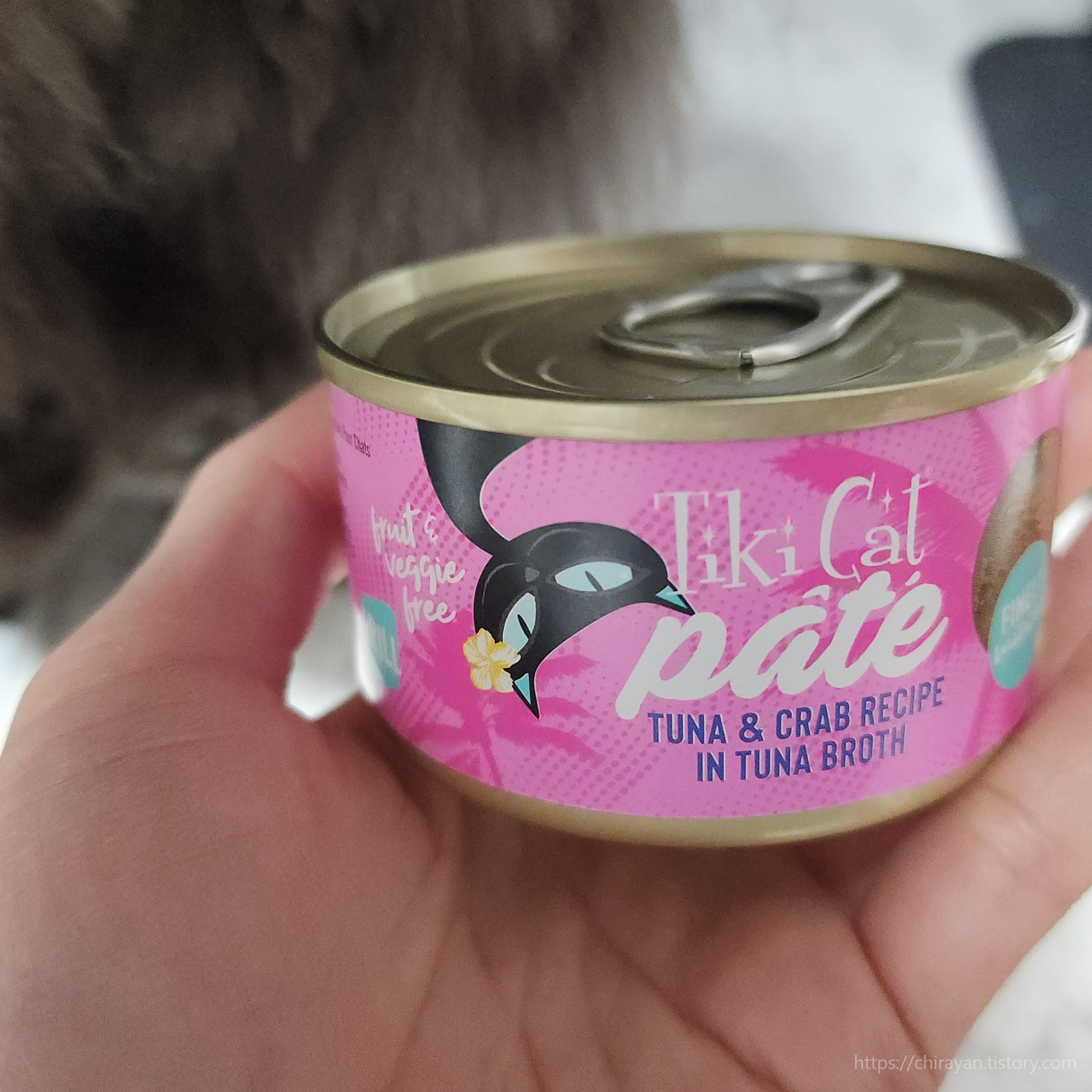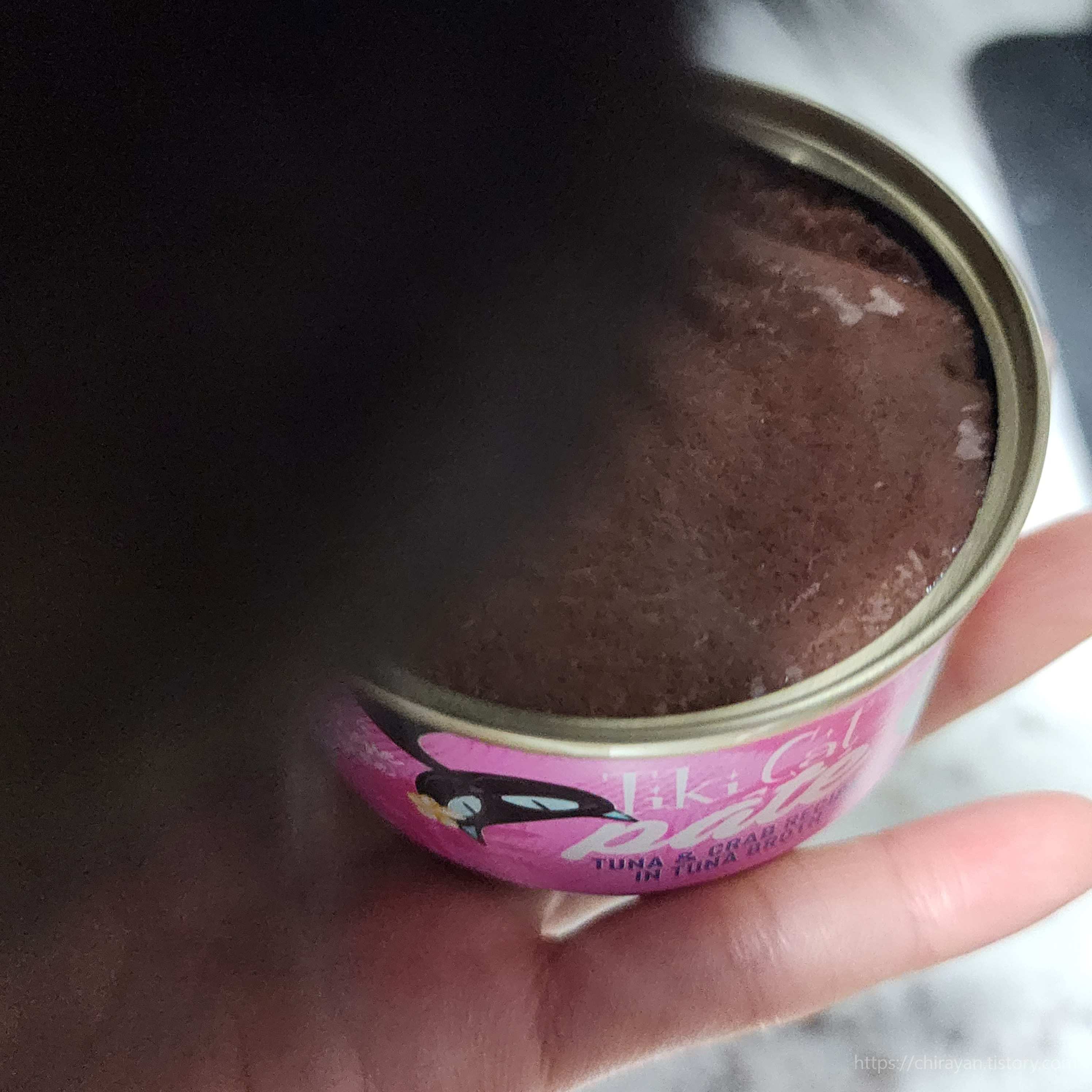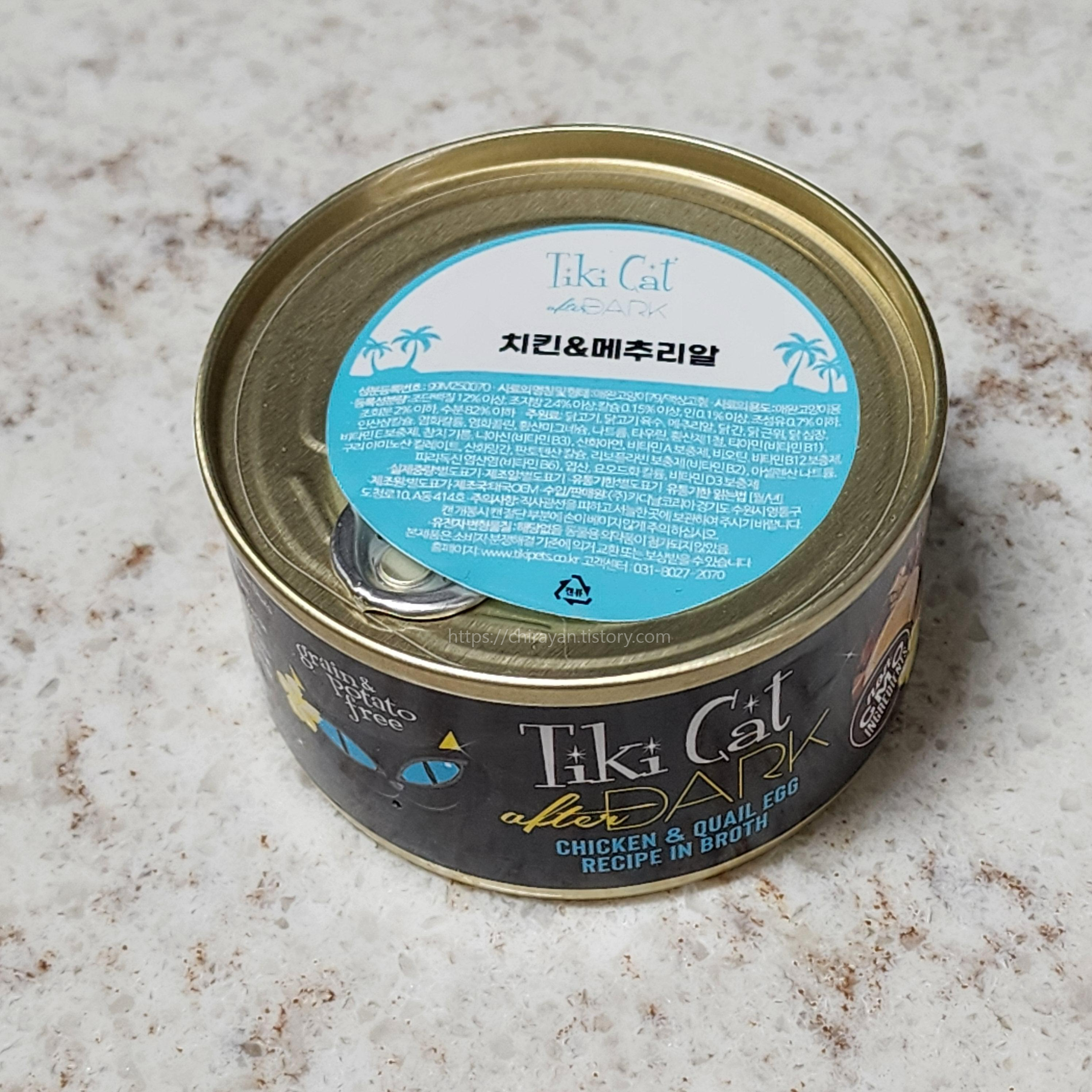 그리고 따는 면에 붙은 정보스티커가 국내유통되는 티키캣 캔의 특징.