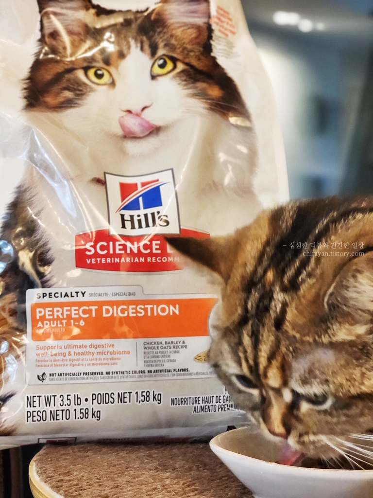 힐스 퍼펙트 다이제스쳔이라는 이름답게 내 고양이의 소화계와 잘 맞는지를 알 수 있게 된다.